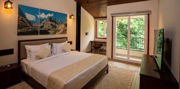 Private balconies with either Ganga or natural water stream views.